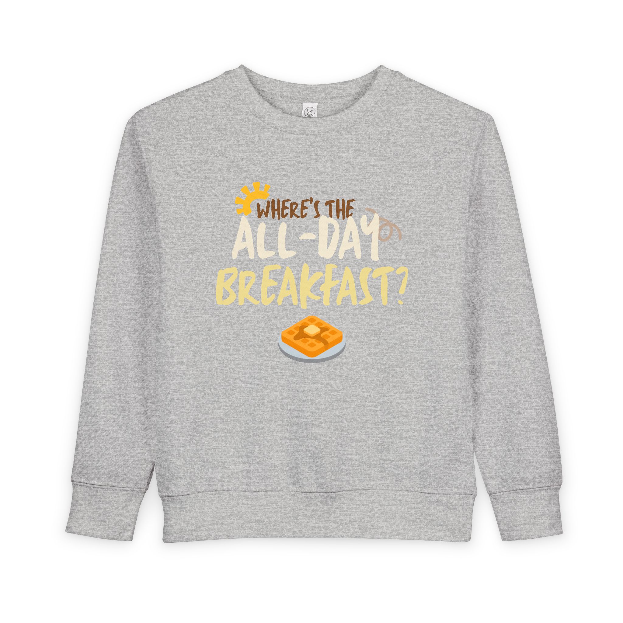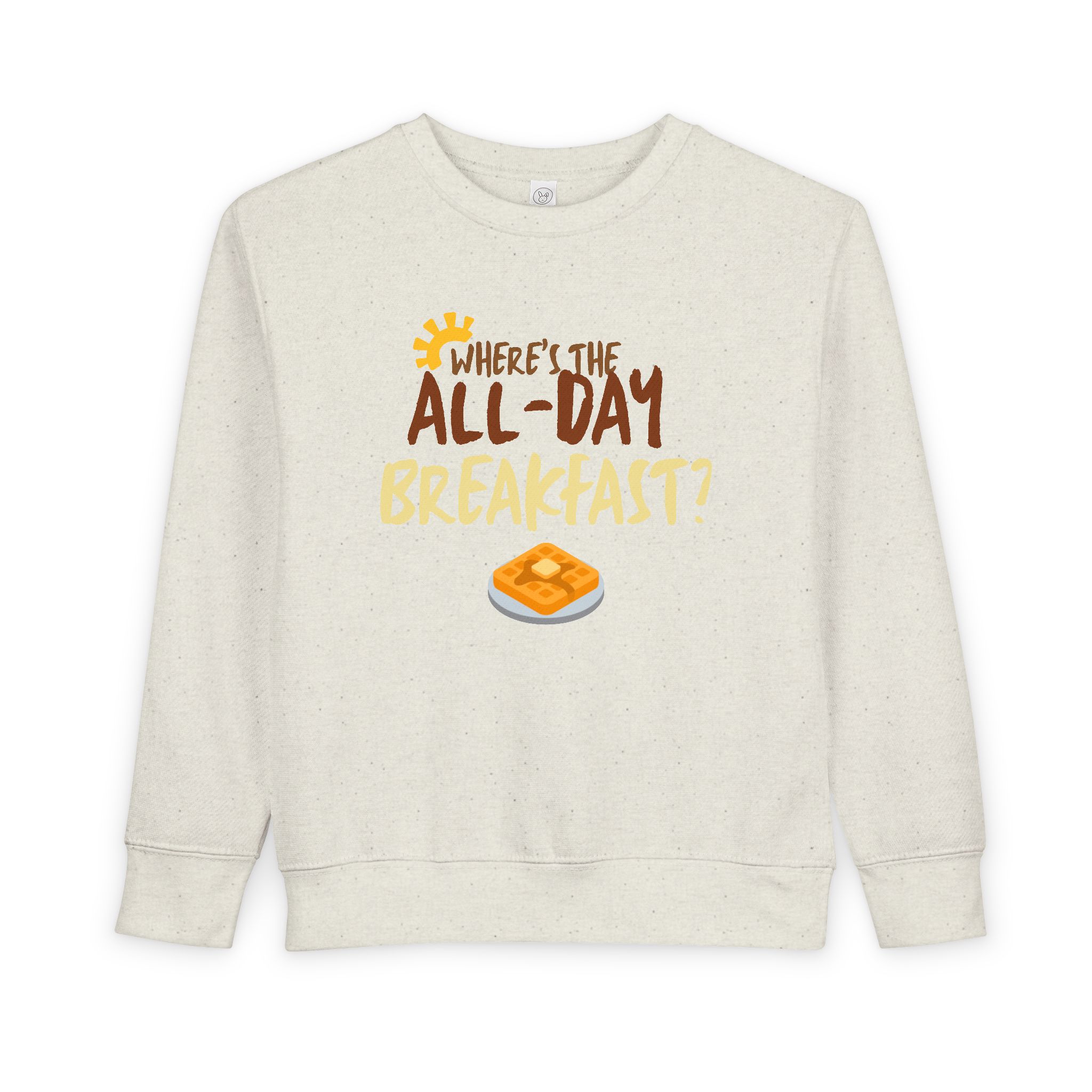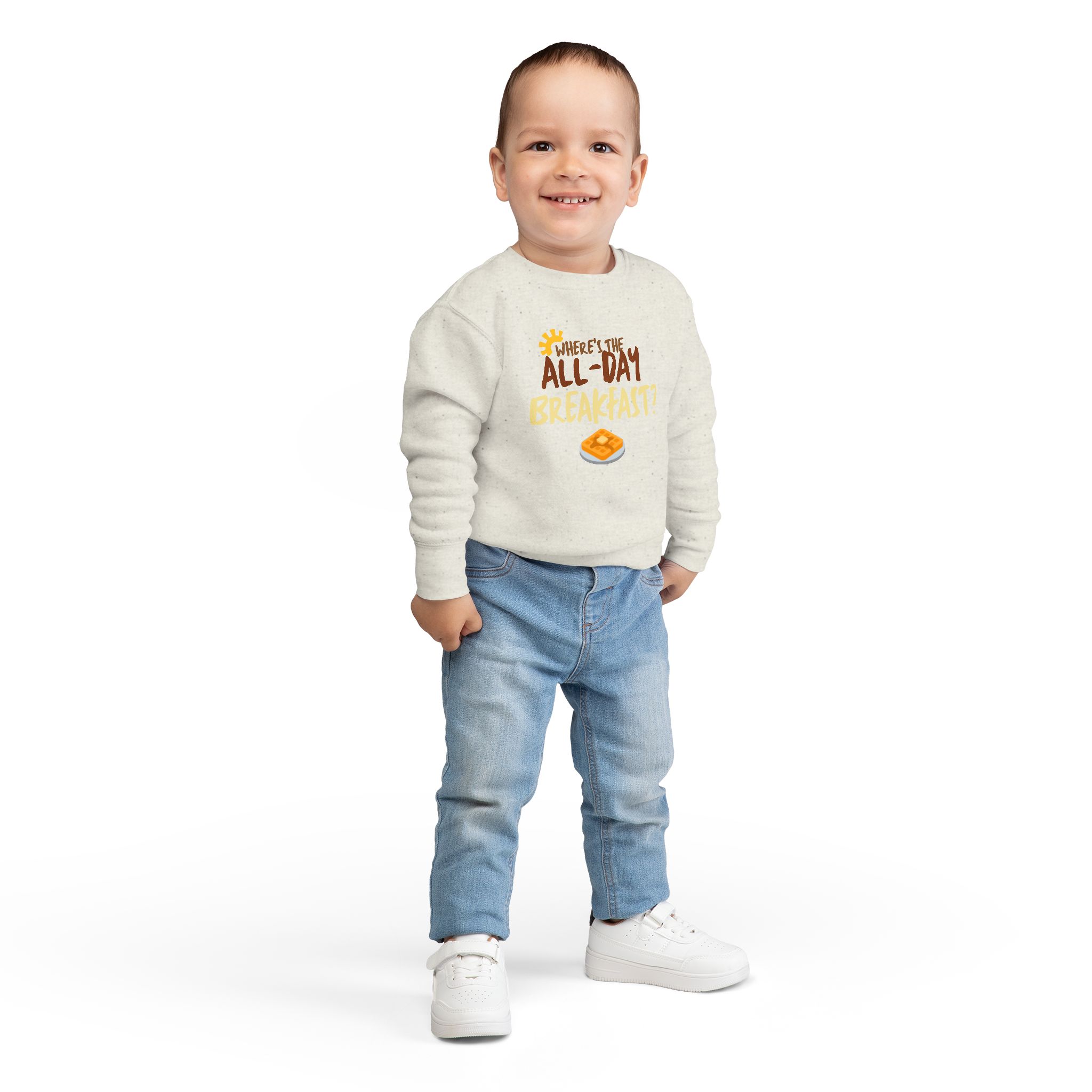 Introducing the perfect addition to your little one's wardrobe: this toddler sweatshirt combines comfort and fun for a cozy, stylish look. Made from a soft blend of cotton and polyester, it wraps your child in warmth while allowing freedom of movement for playtime adventures. The delightful design, featuring a lighthearted breakfast theme, adds a cheerful vibe that captures the joy of childhood.