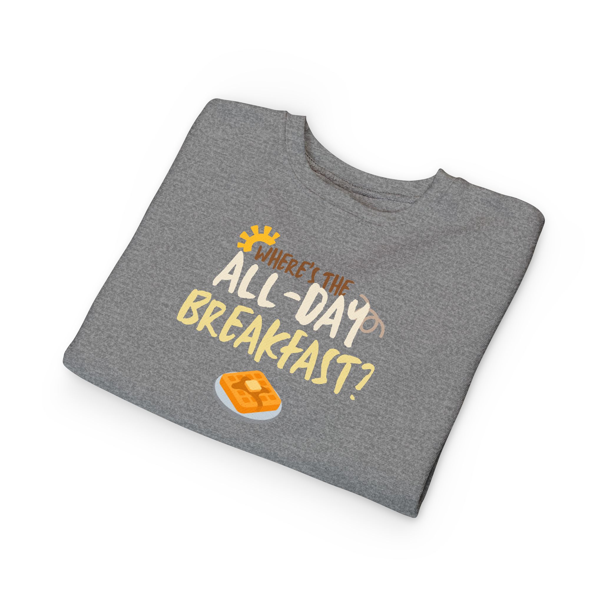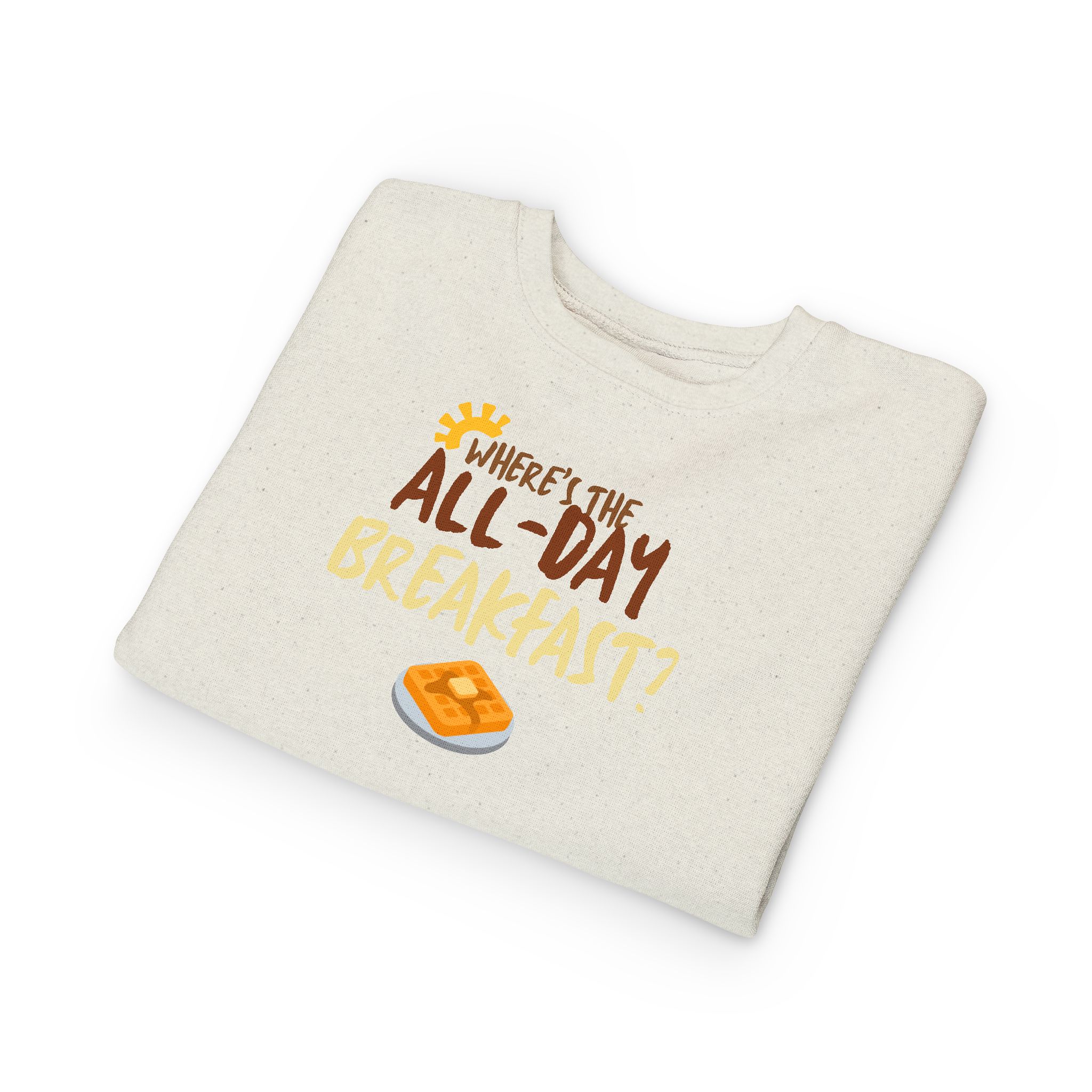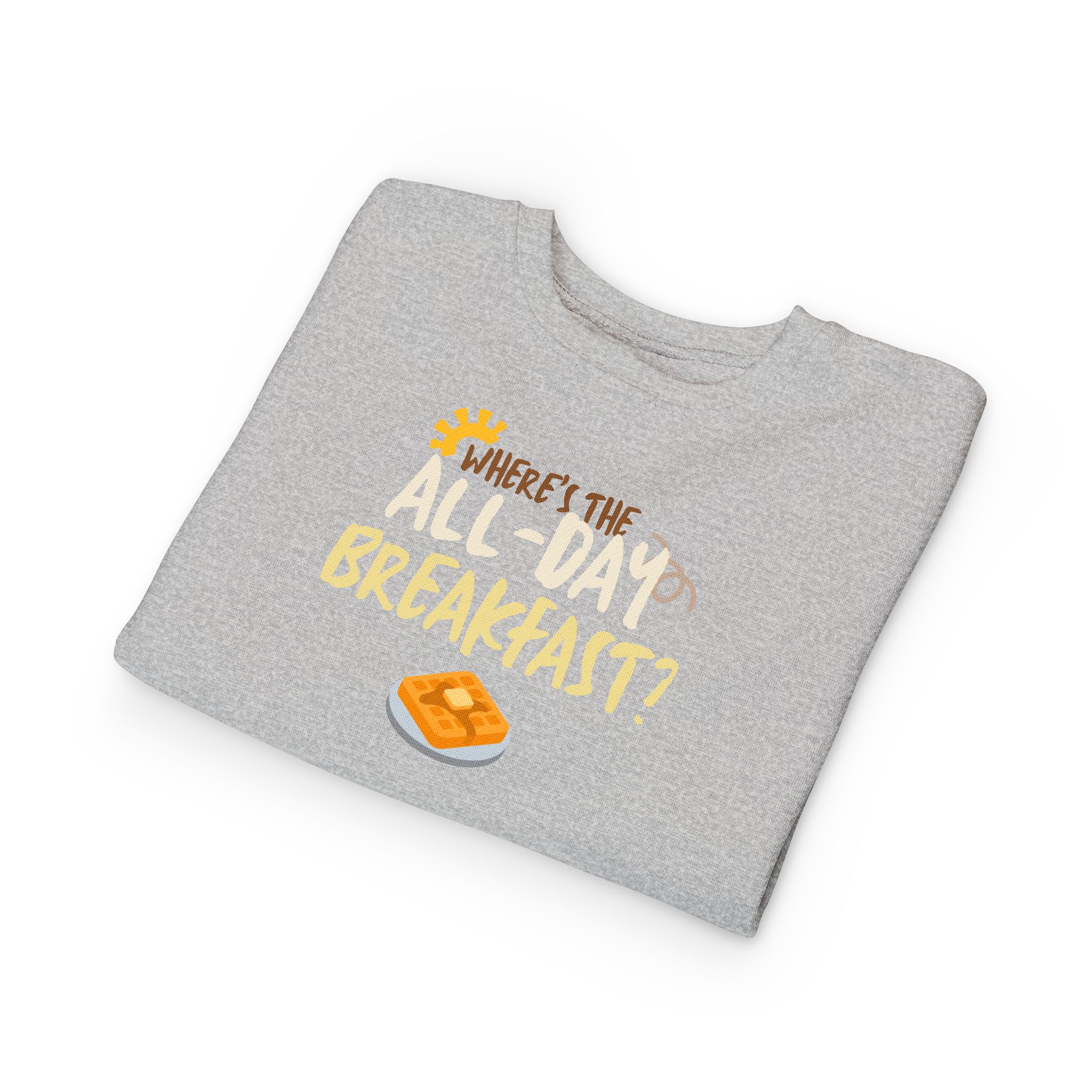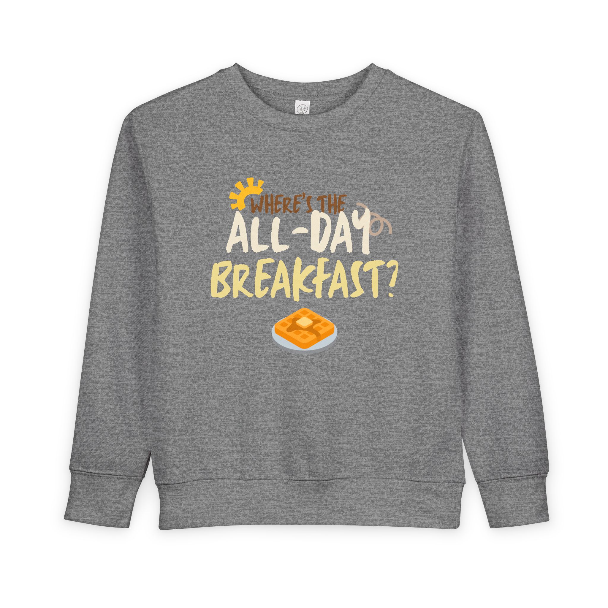 Introducing the perfect addition to your little one's wardrobe: this toddler sweatshirt combines comfort and fun for a cozy, stylish look. Made from a soft blend of cotton and polyester, it wraps your child in warmth while allowing freedom of movement for playtime adventures. The delightful design, featuring a lighthearted breakfast theme, adds a cheerful vibe that captures the joy of childhood.