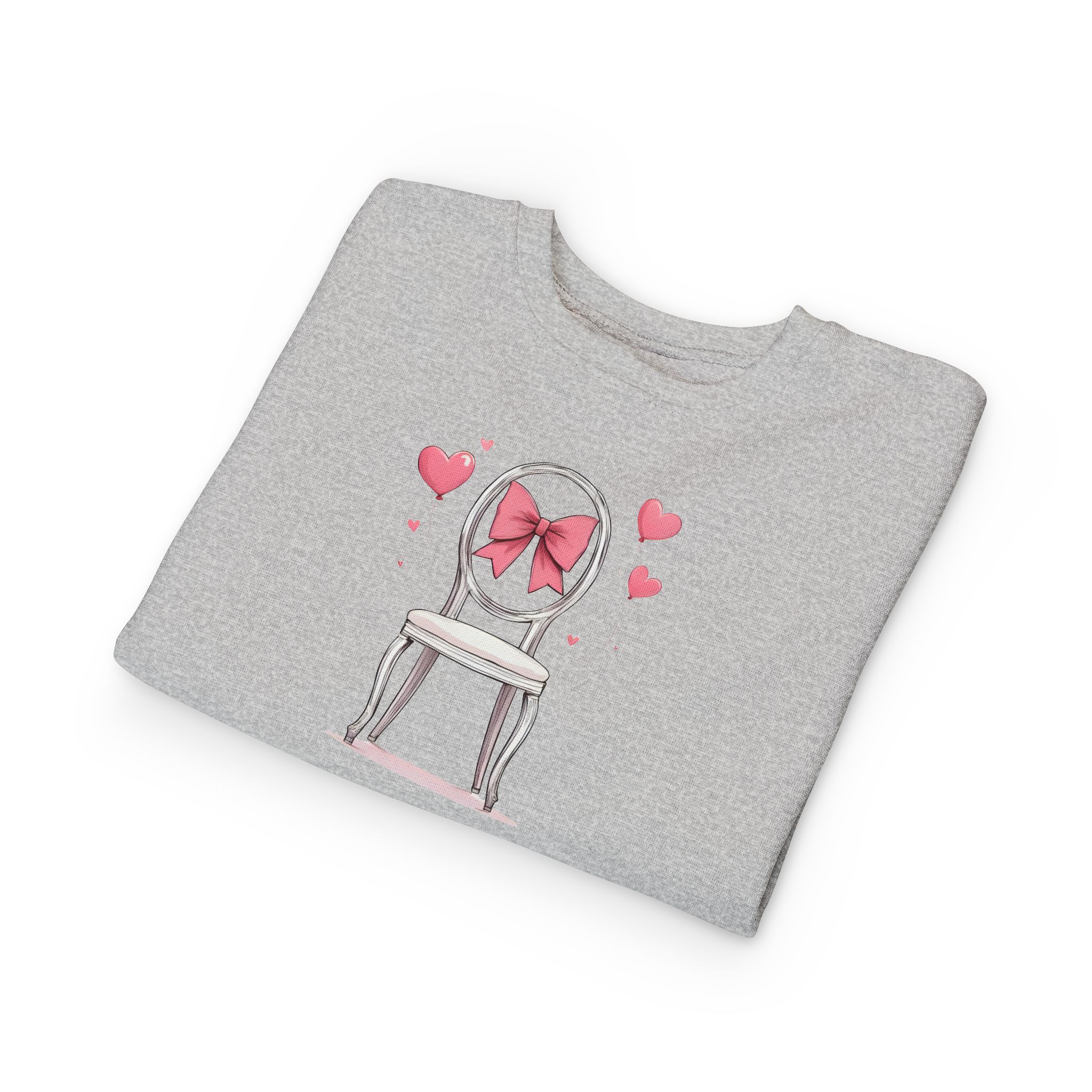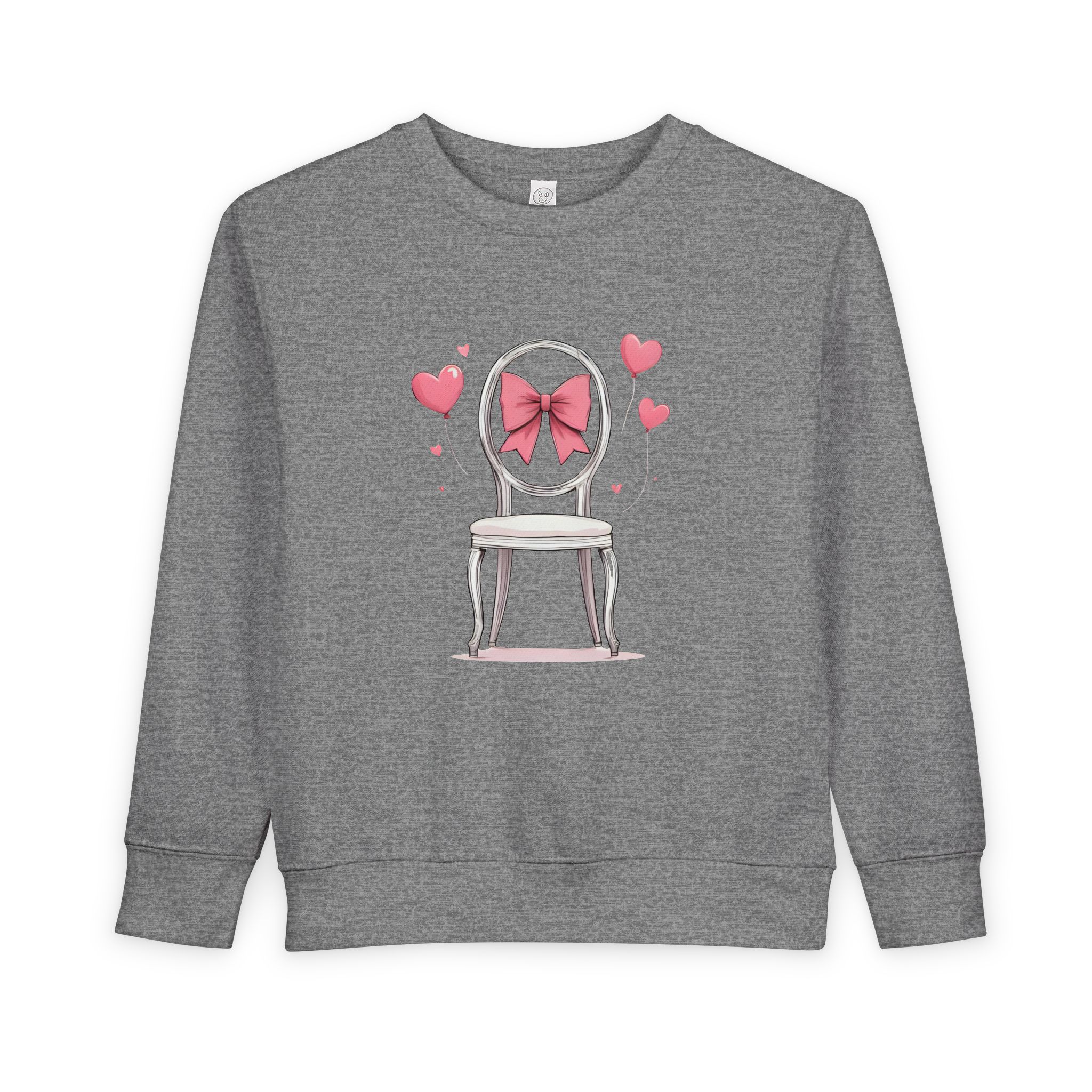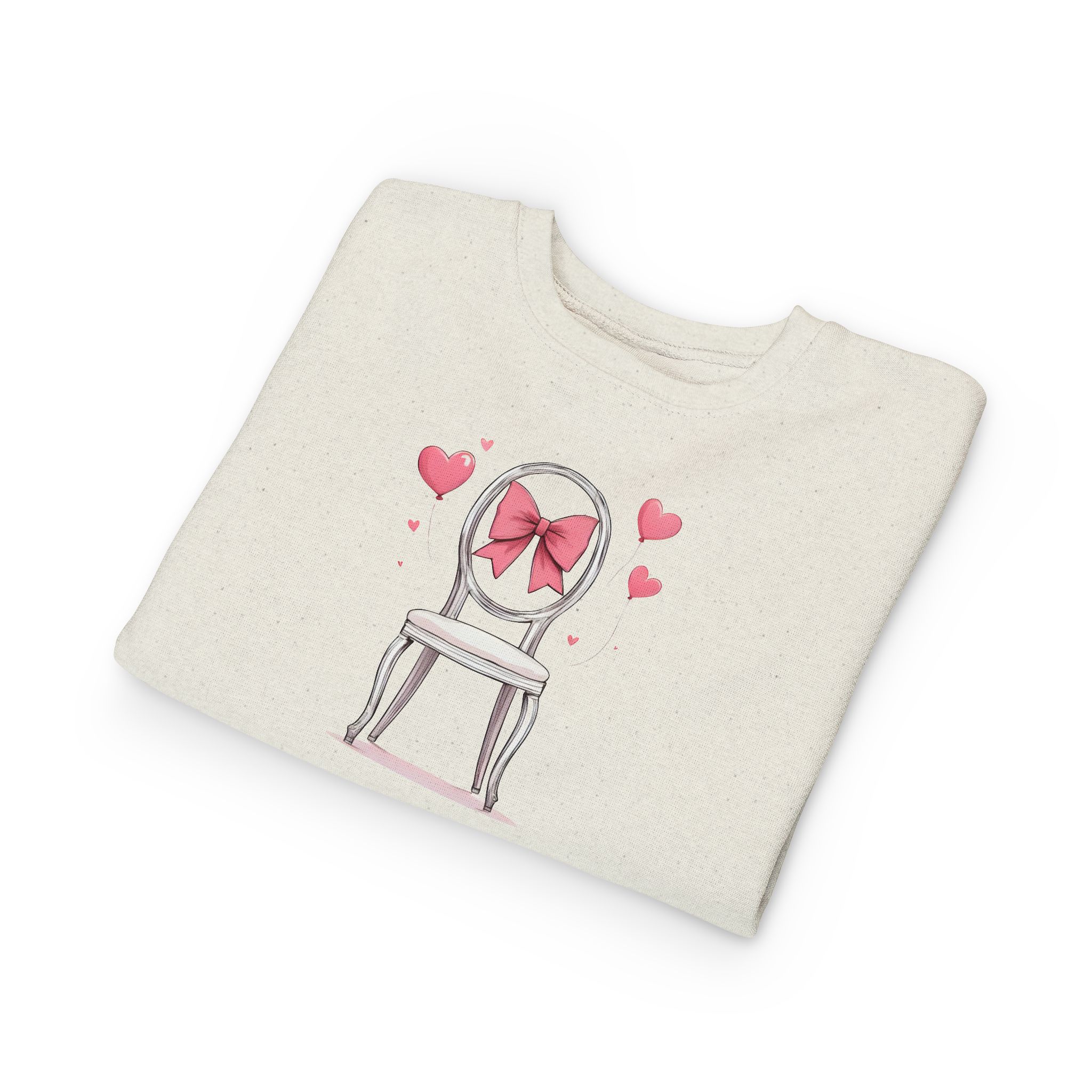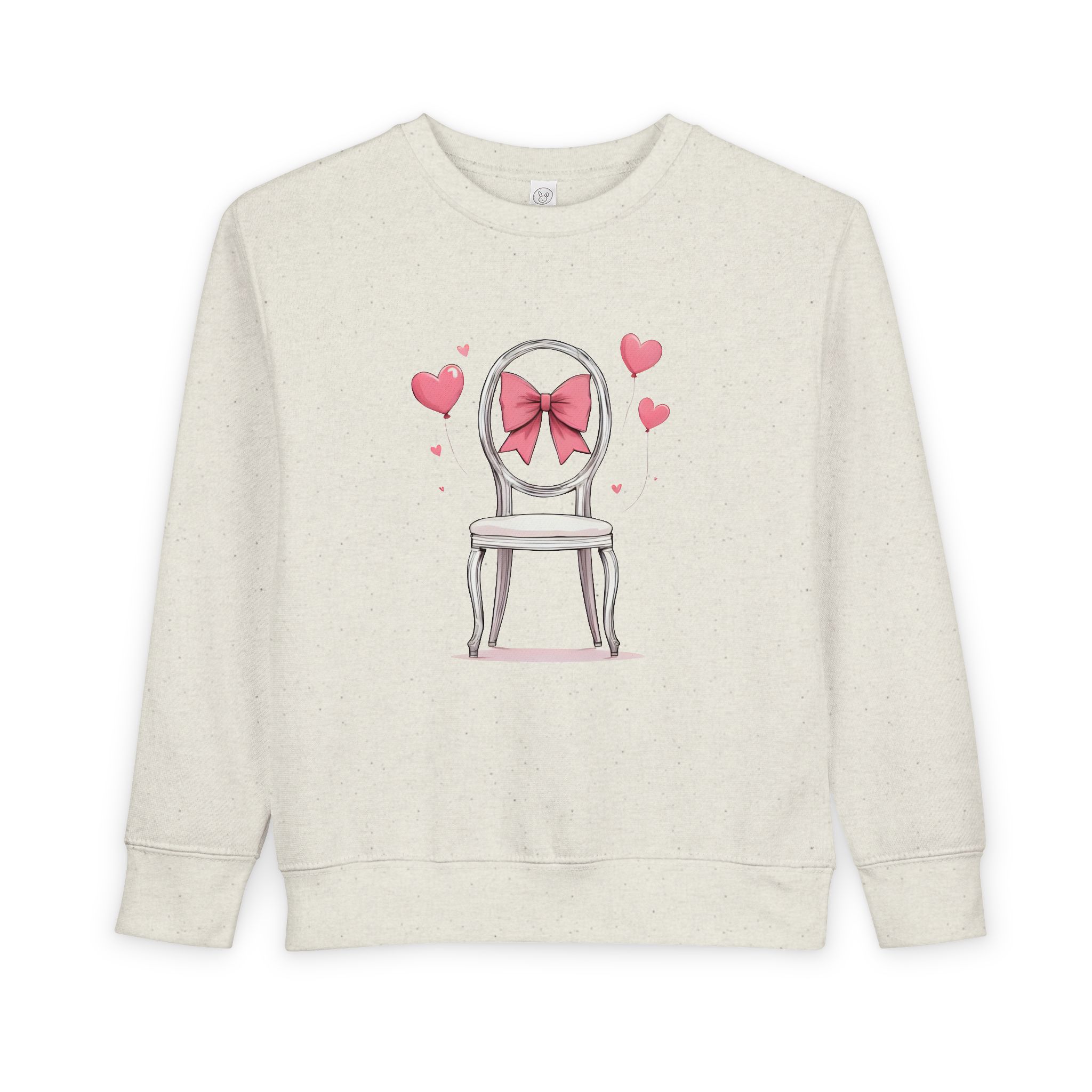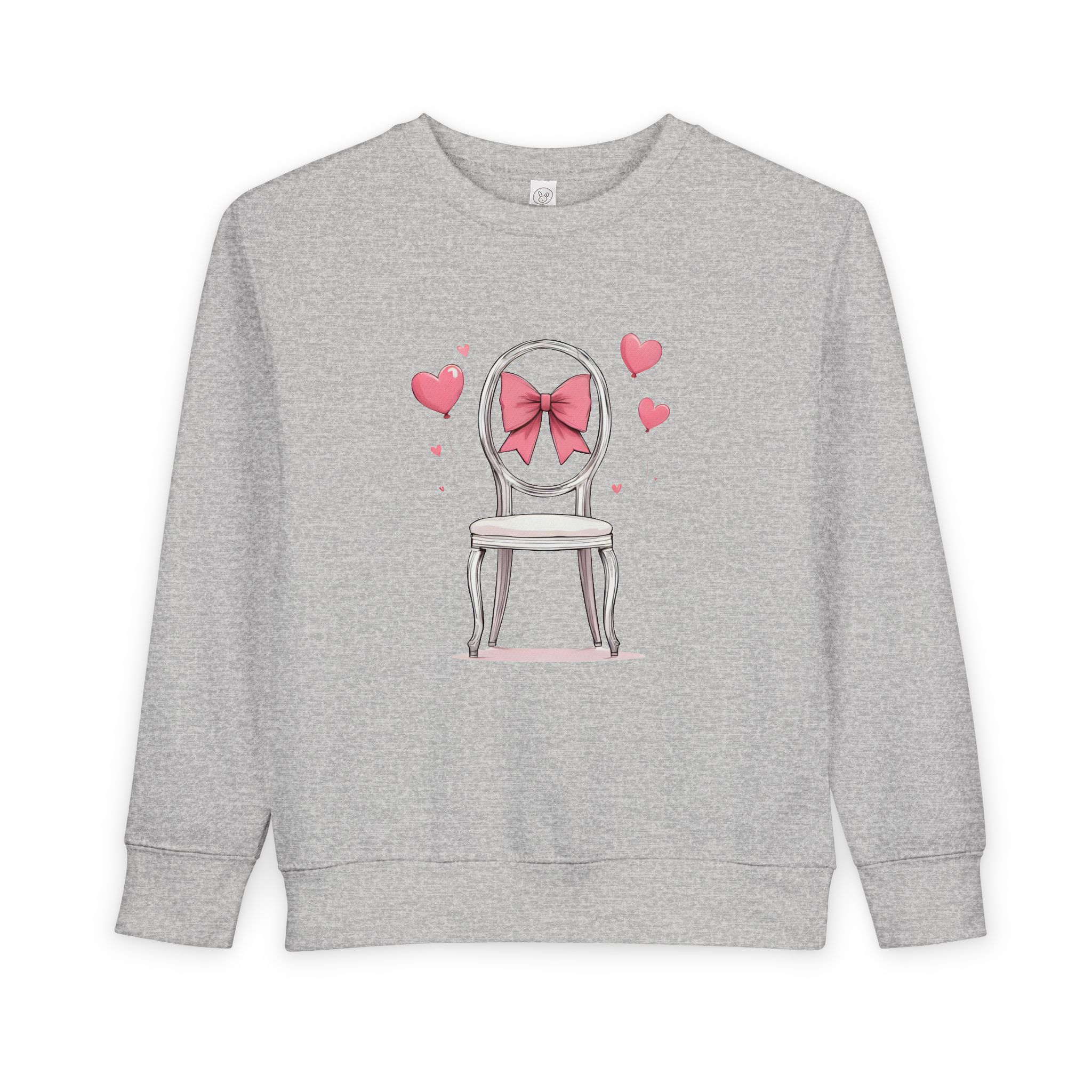 Cozy up your little one's wardrobe with this adorable toddler sweatshirt. Made from a soft blend of cotton and polyester, it ensures maximum comfort for everyday play. The charming design featuring a sweet chair adorned with a pink bow adds a playful touch that children will love. Perfect for chilly days at the park or casual outings, this sweatshirt can become a staple piece in your toddler's closet. Ideal for birthdays, holidays, or whenever a little extra warmth is needed, this sweatshirt brings joy and style to any young adventurer's outfit. It's a thoughtful gift for parents who appreciate comfort and style for their children.